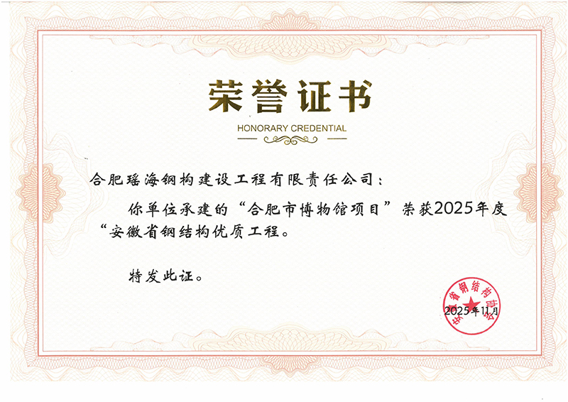 合肥市博物馆荣获安徽省钢结构优质工程奖
