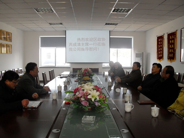 2012年2月3日上午,合肥瑶海区政协主席芮成清领导一行莅临我公司指导慰问工作,董事长凌红兵及相关领导热情接待,对他们的到来表示由衷的感谢,随后向与会的领导汇报我公司的发展情况:瑶海钢构前身是合肥瑶海轻型建材有限责任公司,成立于1998年,当时只有2万元资金。从没有厂房找别的公司加工,到租用办公楼和厂房,再到在合肥市新站区民营工业园征地20余亩,经过十多年的发展,目前我公司已成为一家集