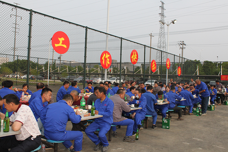 参观结束后,全体员工返回新桥加工基地参加团建活动。活动伊始,公司董事长凌红兵致辞,简单说明了本次活动的意义,并感谢全体员工为项目建设付出的努力。活动现场准备了丰盛的烤全羊、龙虾、水煮花生等特色美食。员工们围坐在一起享用美食,畅谈工作心得和生活趣事,现场欢声笑语不断。