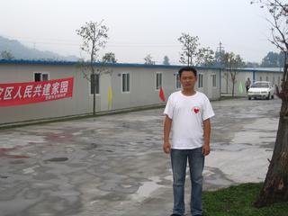 夏源——我公司行政副总暨抗震救灾施工现场总指挥,他于5月24日,第一时间赶赴四川灾区,是我公司第一位到达都江堰援建场地的高层管理人员,夏总在灾区 一呆就是两个多月,在这两个多月里,他带领一个由管理人员和专业技术人员组成的团队,全权负责现场的技术、质量、进度、安全、宣传、后勤、协调、调配等工 作。
