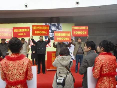2010年1月5日,瑶海钢构集团(右一)向我市慈善协会捐款100000元。
