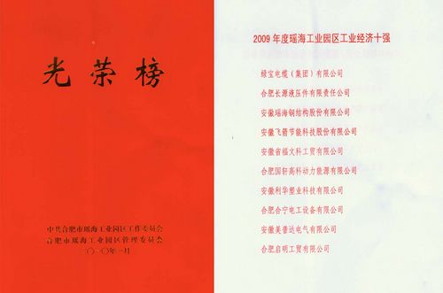 2010年1月中共合肥市瑶海工业园区工作委员会、合肥市瑶海工业园区管理委员会授予瑶海钢构集团“2009年度瑶海工业园区工业经济十强”荣誉称号。