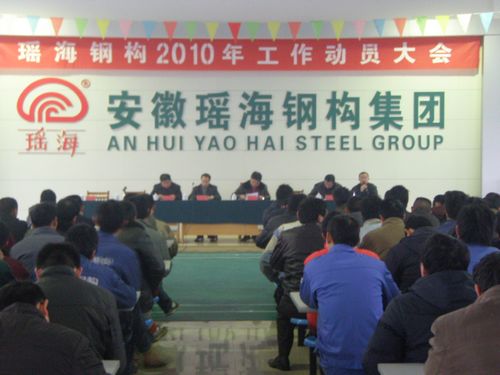 会上,凌宏斌董事长进行了动员讲话,对2009年工作进行了回顾和总结,对今年的工作进行了安排和部署。凌总强调,2010年,将是我公司立足新起点、谋 求新突破关健的一年,他从公司关于2010年总体工作要求入手,分析了今年的管理工作形势,提出了“抓规范、重管理、强服务、求发展”的总体工作思路,部 署了今年将着力做好的四个方面的工作:一是认清形势,统一思想,坚定不移地献身于钢结构行业;二是咬定目标、鼓足干劲,全心全意地投身于瑶海钢构;三是强 化措施、真抓实干,全力以赴置身于工作岗位。