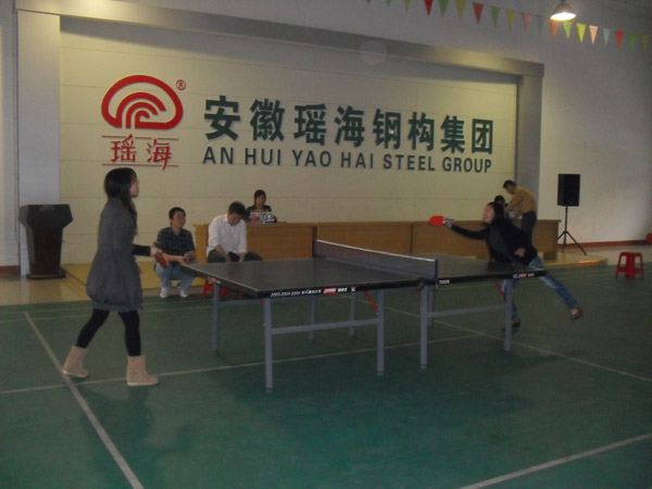 本报讯:2011年10月22日,首届“瑶海钢构”杯乒乓球比赛在公司多功能厅拉开了帷幕,本次比赛分男子团体赛和女子个人赛。比赛按循环赛、淘汰赛直至最后的冠亚季军争夺赛,工会主席王一麟、团支部书记张庆国分别担任各组的裁判。