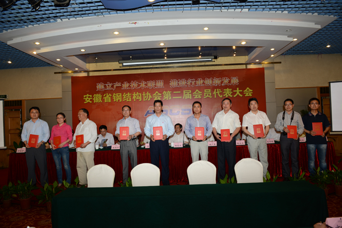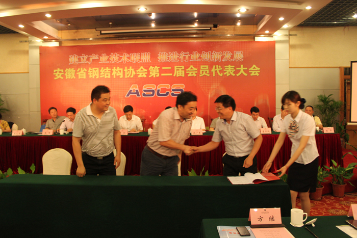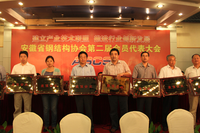 本报讯:2013年6月8日,安徽省钢结构协会第二届会员大会在合肥隆重召开,省住房和城乡建设厅、省工商联、省民间组织管理局、合肥市住建委、同济大学、合肥工业大学等领导、专家与安徽省钢结构行业企业家一起就我省钢结构未来发展献计献策,共话发展。按照程序,大会首先审议通过了安徽省钢结构协会第一届理事会工作报告,并选举产生了第二届领导班子,安williamhill构集团董事长凌红兵任常务副会长,杨俊斌、商晓波分别担任会长及监事会主席。接着各位领导发表热情洋溢的讲话,随后,安徽省钢结构行业的知名企业如瑶海钢构、鸿路钢构、富煌钢构等与上海同济大学,合肥工业大学等高校代表联合签订了“安徽省钢结构住宅产业化技术创新联盟“协议,与高校签订合作联盟,成功开启了安徽省钢结构行业产学研一体化的发展之路。大会最后通报并表彰了安徽省钢结构行业2011-2012年度“最佳企业” “优秀通讯员单位”等,瑶海钢构榜上有名。瑶海钢构1998年成立,以2万元贸易起步,进而转向于新型墙体维护材料的加工、生产和经营,一心一意做实业,经过五、六年的艰苦创业,企业实力逐渐增强,业务市场逐步形成,经营资本日渐积累,管理经验日趋成熟。并在瑶海工业园申请购买了100亩工业用地,开发钢结构项目,截止到2012年,公司形成以生产、制造、施工和检测为一体的新型建筑体系运营商,并已成集团化架构,旗下拥有安williamhill结构股份有限公司、合肥市明远建设工程有限公司、安williamhill结构建筑设计研究院、合肥市鼎一劳务有限公司等5个全资子公司。并先后拥有房屋建筑施工总承包贰级资质、钢结构专项设计甲级资质、钢结构工程专业承包一级资质、钢结构制造一级资质等,并先后被上级主管单位认定为“国家高新技术企业”、“安徽省企业技术中心”、“安徽省名牌产品”“全国钢结构行业百强企业”、“安徽省大型钢结构生产基地”、“安徽省优秀建筑企业”,其代表工程合肥火车站无站台柱雨棚和蚌埠南站雨棚钢结构更是获得钢结构至高荣誉——“中国钢结构金奖”。获得优秀通讯员单位称号实至名归,为了协会报刊,只要有新闻稿件,瑶海钢构会第一时间以文字和图片的形式向协会投稿,安徽钢协报每期都有一至二篇甚至更多瑶海钢构新闻稿件。极大地丰富了行业媒体的内容,对瑶海钢构也是一个很好的宣传作用。