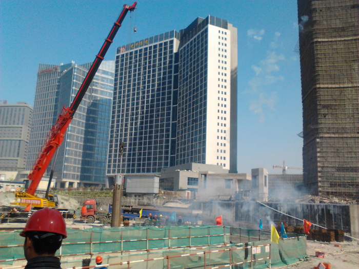 2014年3月22日,伴随着数声礼炮响起,由瑶海钢构承建的中宇国际大厦52层钢结构工程首根钢柱正式开始吊装,巨大的履带吊车将重达数吨的巨型钢柱缓缓拉升。十多分钟后,在现场人员的指挥下,钢柱稳稳落地,精准放入指定位置,中宇国际大厦首根钢柱吊装工作圆满成功。
