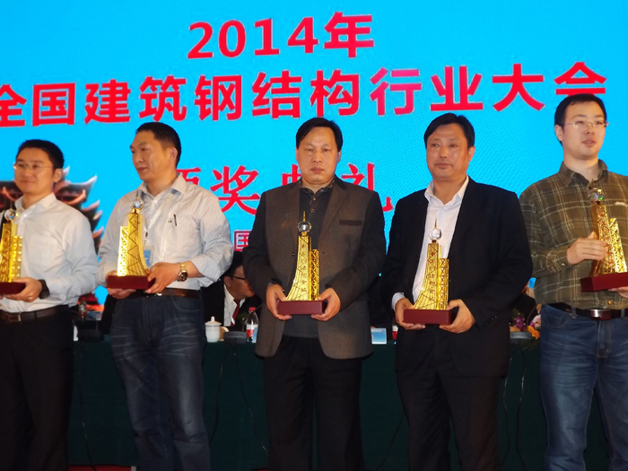 2014年4月18日,全国建筑钢结构行业大会在湖北武汉国际会展中心隆重召开!由我司承建的日立建机(中国)有限公司第二工业园大型机车间钢结构(制作、安装)荣获二零一三年中国钢结构金奖(国家优质工程),董事长凌红兵被评为2013年度中国建筑金属结构协会优秀工作者。