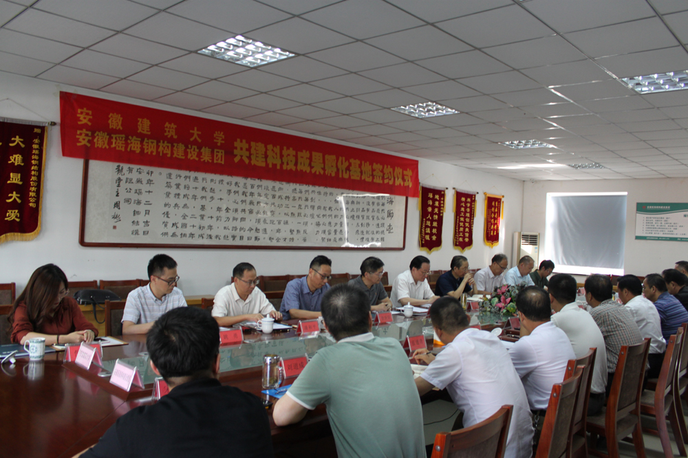 本报讯:2020年8月27日下午16:00,安徽建筑大学与williamhill共建科技成果孵化基地签约仪式在瑶海钢构举行。