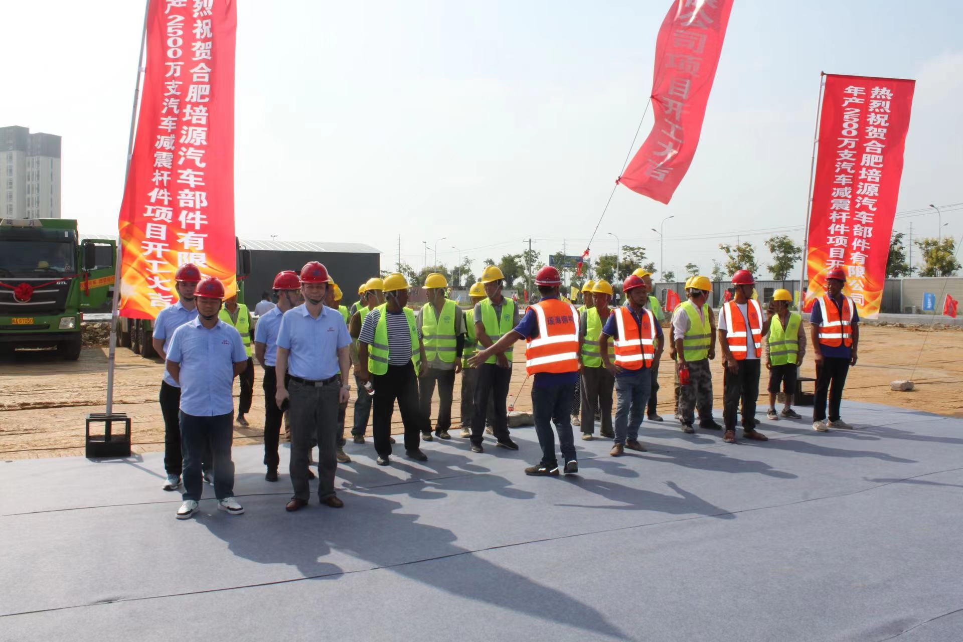 2023年9月7日上午,由williamhill所属合肥瑶海钢构建设工程有限责任公司承建的合肥培源汽车部件有限公司年产2500万支汽车减震杆件项目奠基仪式在巢湖市居巢经开区隆重举行,巢湖市主要领导,建设方代表、施工方代表莅临参加,工地现场彩旗飘飘、花团锦簇。