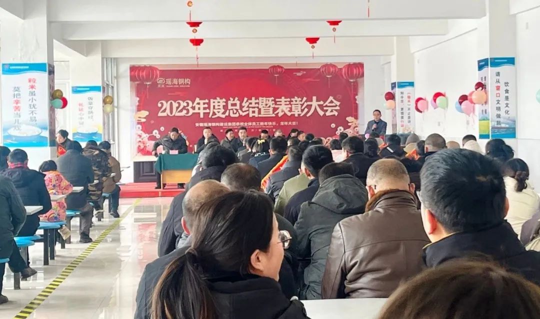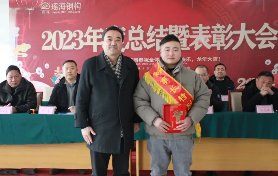 在听取各部门的工作总结后,会议进行到表彰环节。对2023年表现优异的优秀员工、先进管理者、优秀项目经理、红管家、先进班组和先进集体、董事长特别奖、寿县焊工技能大赛技师奖分别进行表彰及颁奖。随后优秀员工代表作获奖感言。希望在新的一年里我们承继优秀者的足迹,用热忱与坚韧,用真诚与执著,用勤奋与质朴,用真情与汗水,继续书写瑶海钢构新的华章!