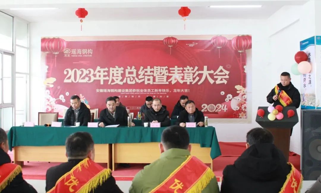 金兔已去春风暖,龙年乍来喜气浓,2024年2月7日,安williamhill海钢构建设集团2023年年度总结暨表彰大会在瑶海钢构新桥生产基地隆重召开。总结会围绕2023年取得的各项成绩及对2024年的规划展开,同时对2023年度为公司发展作出突出贡献的“优秀员工”和“优秀管理者”等进行表彰,集团公司董事长凌红兵、各事业部主要负责人、职能部门职工及生产基地全体职工欢聚一堂。