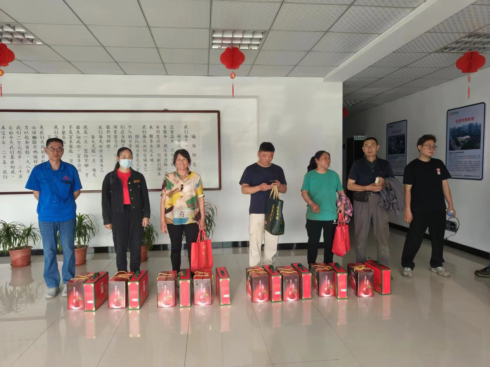 瑶海钢构集团工会主席史中吏代表集团公司将苹果、粽子等慰问品送到了职工手中,对长期以来坚守岗位、辛勤付出的职工表示衷心感谢。“礼轻情意重,关怀暖人心”,当一份份饱含公司关爱和祝福的慰问品,送到职工的手中时,大家喜悦之情溢于言表。