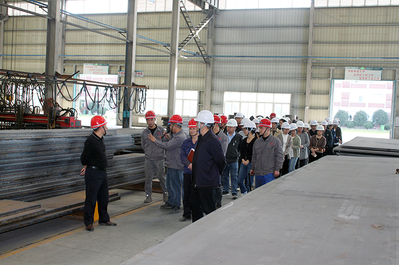 在活动当天,公司全体员工在车间负责人的带领下,实地查看了钢构件的生产过程和工艺流程。车间内机器轰鸣,工人们正在紧张有序地工作着,各道工序井然有序,严谨细致。