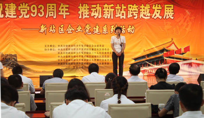 6月20日,新站区纪念建党93周年大型系列活动在新站区礼堂举行,内容丰富多彩:表彰、演讲和演出融为一体,瑶海钢构党总支委员劳建新接受表彰并领奖,演讲比赛也亦为激烈,最终瑶海钢构企管中心副主任夏秀梅获得优秀奖。